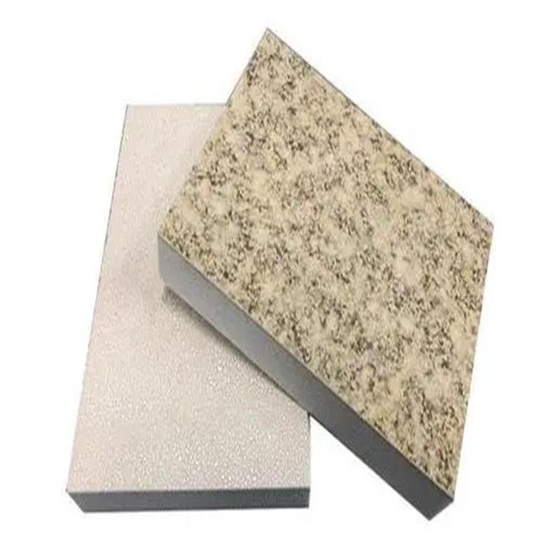 四川石材保温装饰板是由饰面层、面板层(饰面载体层)、保温芯材、胶粘剂以及耐候硅酮密封胶等材料组成,经工厂经全自动生产线制作而成,集装饰与保温功能于一体的新型复合型板材,其装饰面层和保温芯材可自由组合,能满足不同区域建筑装饰及节能的设计要求。